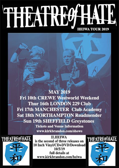 I’ve seen Spear of Destiny (SOD) a number of times so tonight I was looking forward to my first Theatre of Hate(TOH) gig. I’m probably preaching to the converted but for my American followers TOH were the forerunners of SOD. TOH emerged in 1980 were post punk and only lasted a couple of years before SOD were formed from it’s ashes. TOH were certainly less radio friendly, more angry, unpolished, raw, frantic with a unique bleak landscape sound and lyrics. SOD were more chart-friendly alt-arena rock but alas never made it to the big time, tis a pity. Output wise Kirk successfully resurrected TOH in 2014 with the LP ‘Kinshi’ released via a private pledge and is currently touring in support of their latest release ‘Heiwa’. Short history lesson over 😊.