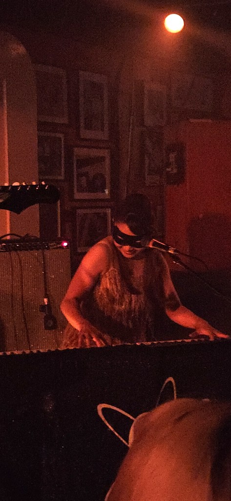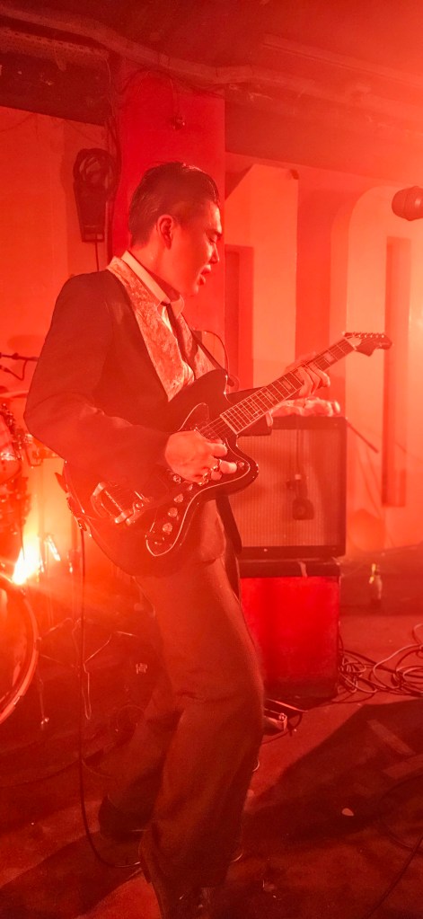 The Stompin’ Riff Raffs mix it up with 1950s style rock ‘n’ roll/Rockabilly with 1960s garage punk in an high energy Ramones type assault on the audience. There is no chatting between songs, just one psychobilly riff after another in their 34 song repertoire. The songs are all pretty short, sub 2 or 3 mins, they make Ramones songs feel like Yes epics 😊. The song titles (ghost train, burning, surfing, witches, vampires, screaming, horror show, phantom, heavy sick) suggest they have been inspired by watching way too many B-movies.