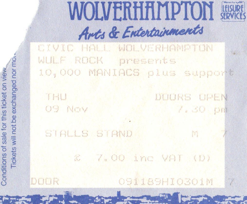Stub – 10000 Maniacs [9 Nov 1989] Wolverhampton Civic Hall