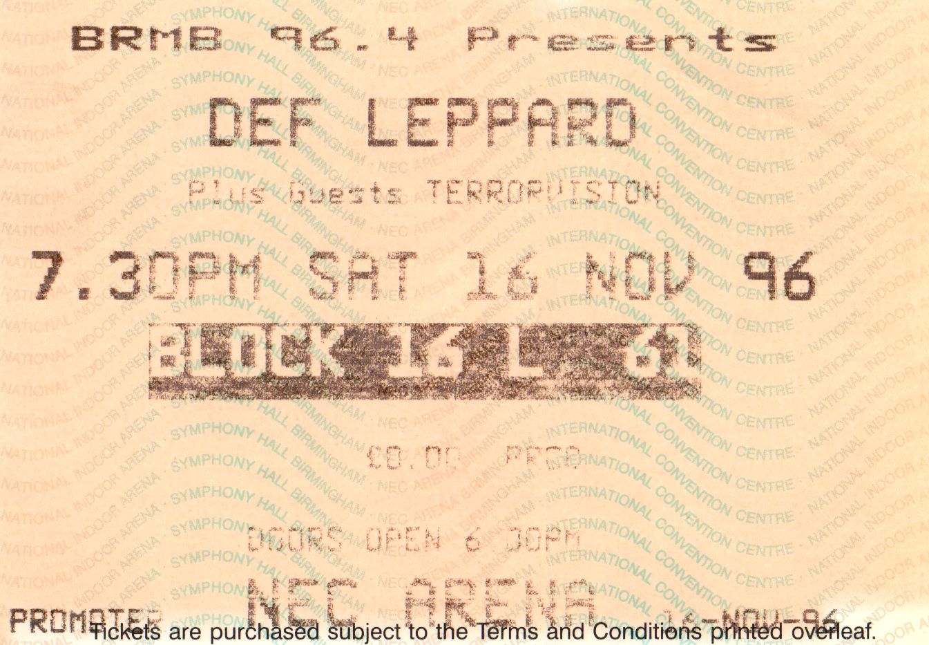Stub – Def Leppard [16 Nov 1996] Birmingham NEC