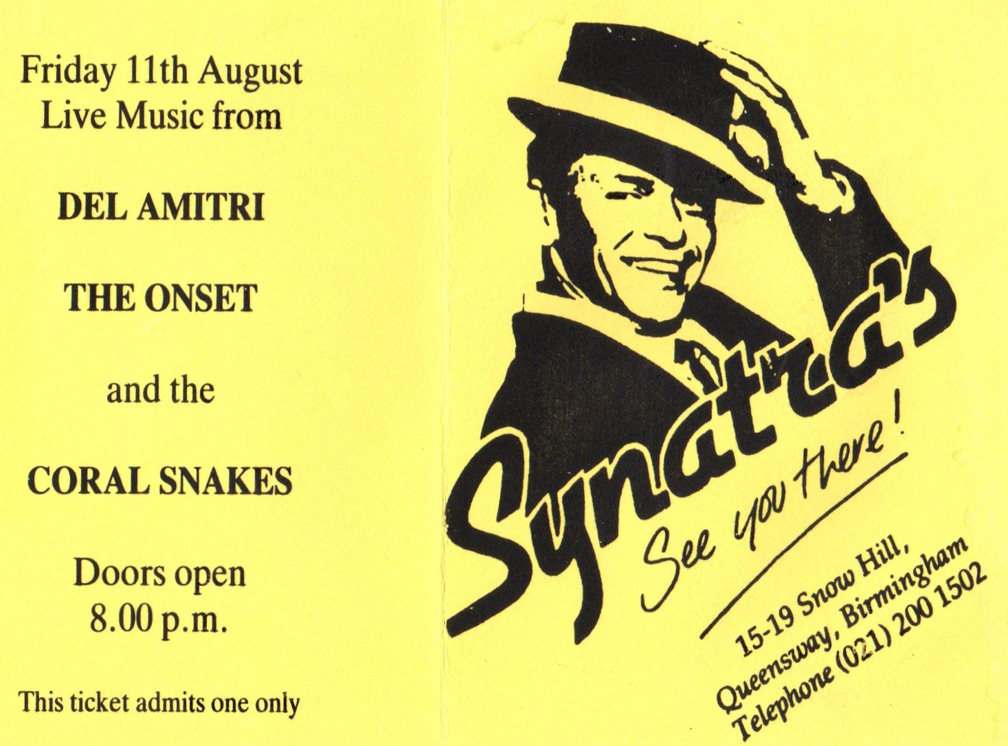 Stub – Del Amitri [11 Aug 1989] Birmingham Synatras