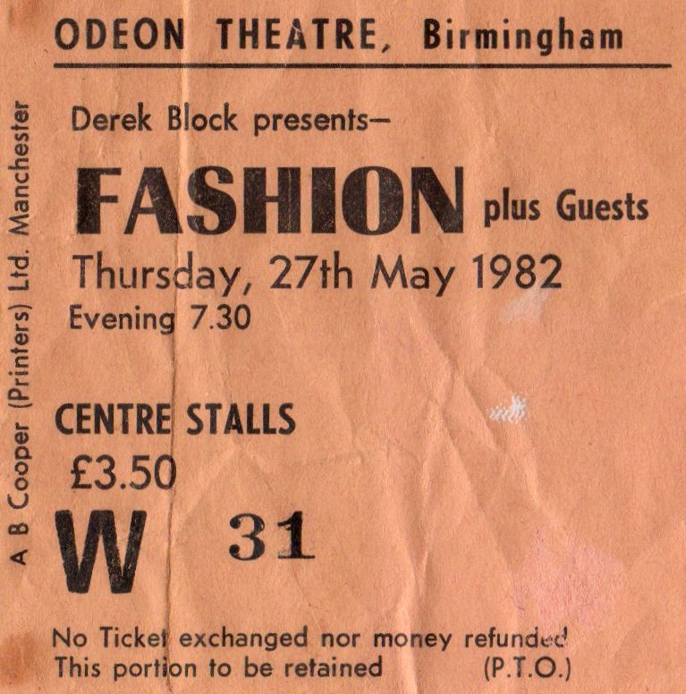 Stub – Fashion [27 May 1982] Birmingham Odeon