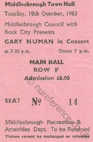 Stub – Gary Newman [18 Oct 1983] Middlesbrough Town Hall