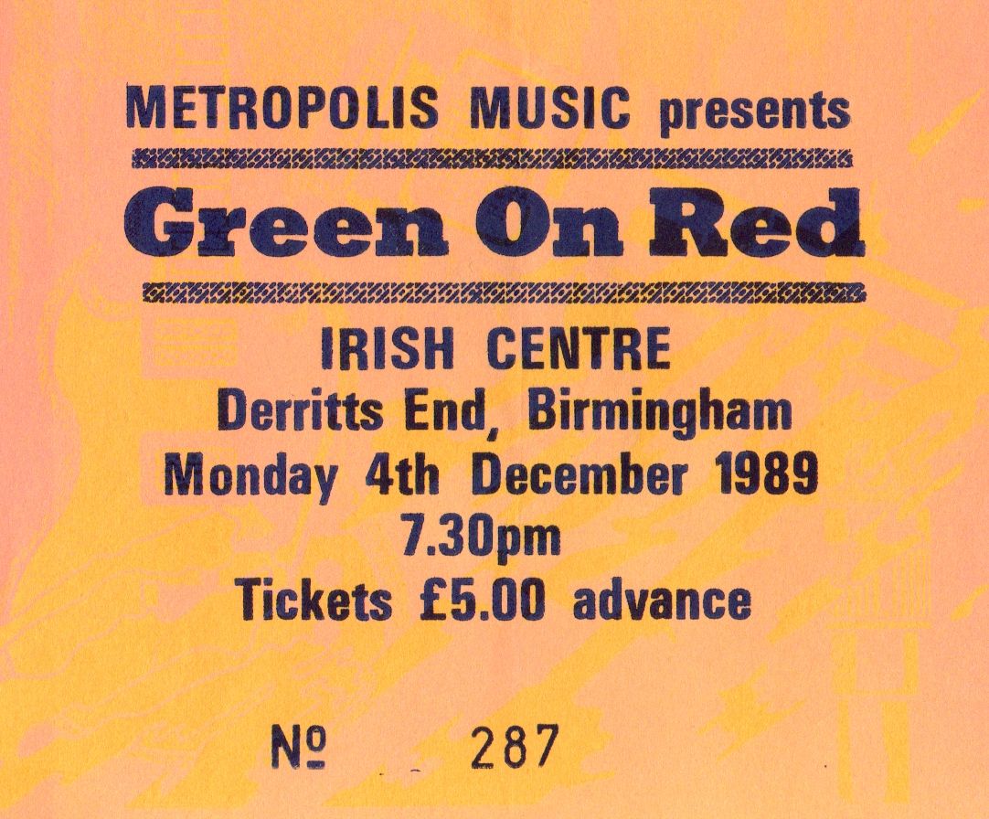 Stub – Green On Red [4 Dec 1989] Birmingham Irish Centre
