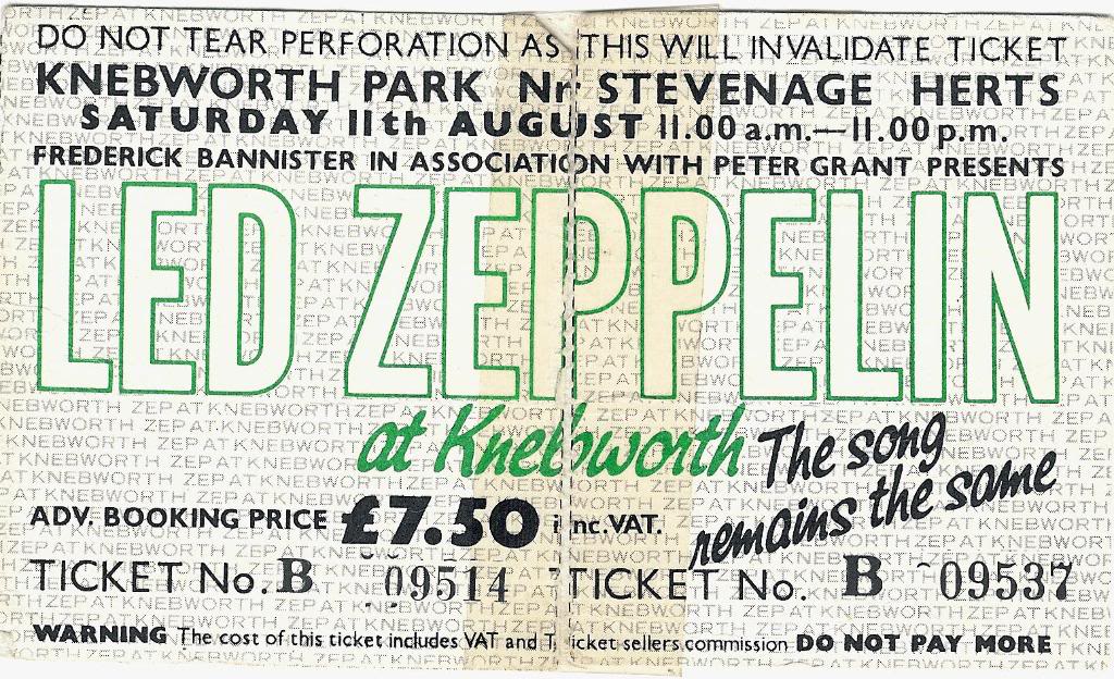 Stub – LedZep Knebworth ticket