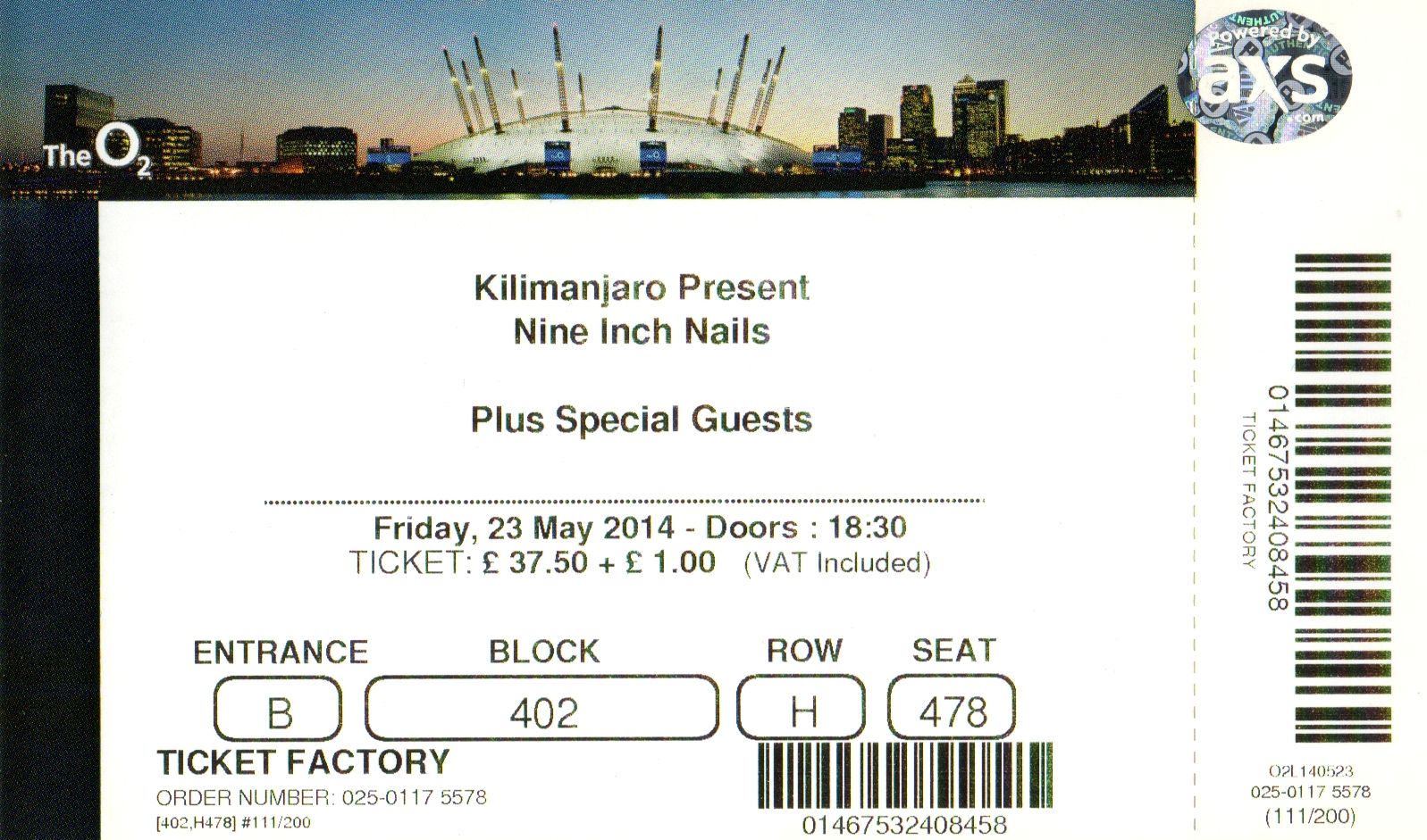 Stub – Nine Inch Nails [23 May 2014] – O2 London