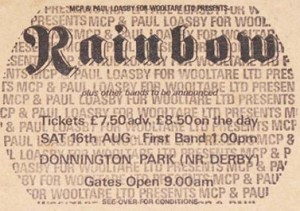 Stub – Rainbow [16 Aug 1980] Monsters of Rock Donnington Park