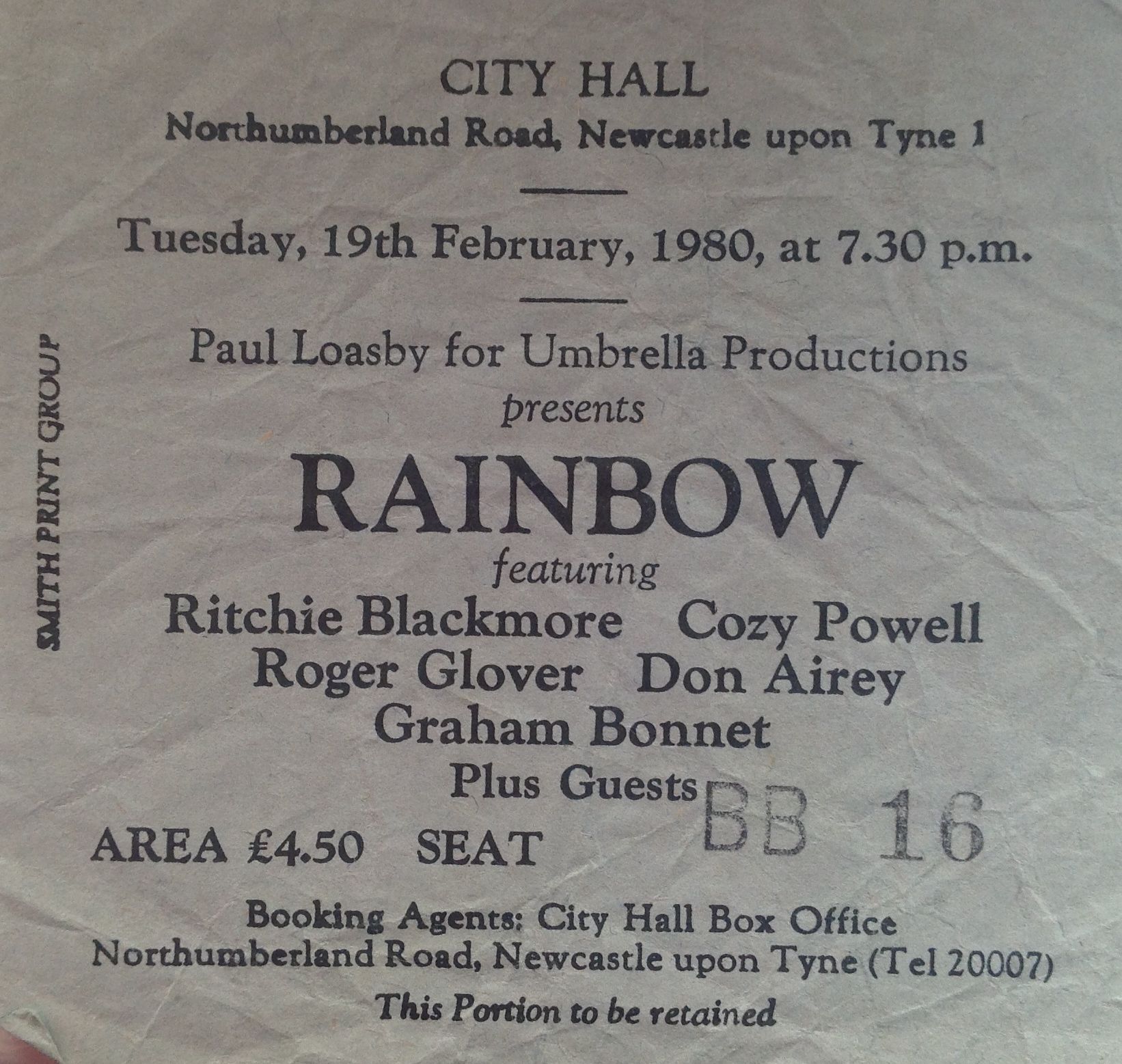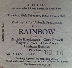 Stub – Rainbow – [19 Feb 1980] Newcastle City Hall
