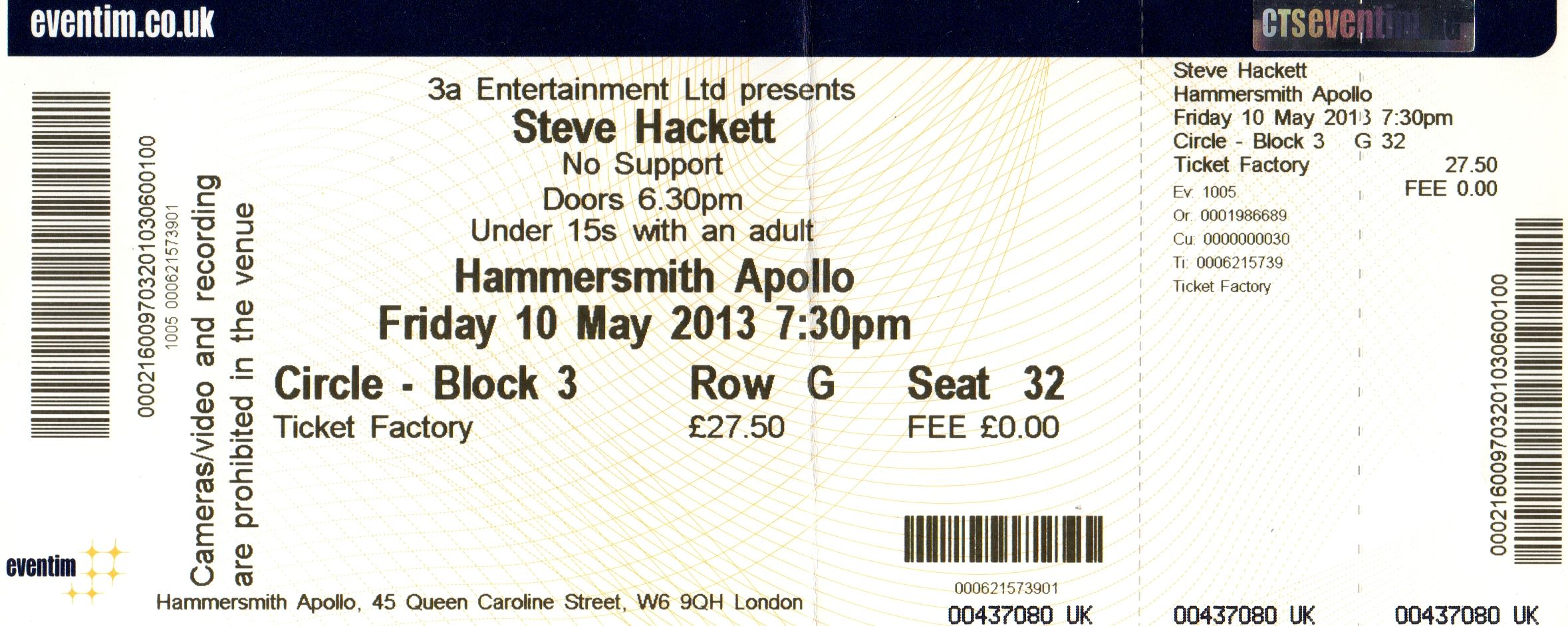 Stub – Steve Hackett – [10 May 2013] Hammersmith Apollo London