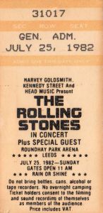 Stub – The Rolling Stones [25 July 1982] Leeds Roundhay Park