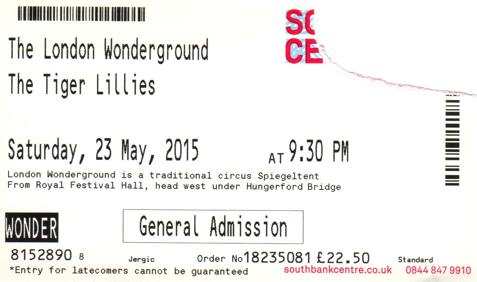 Stub – The Tiger Lillies [23 May 2015] – London Wonderground