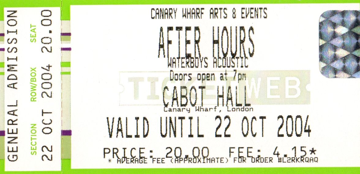 Stub – The Waterboys [22 Oct 2004] London Canary Wharf